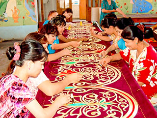 Золотное шитьё, или zardo‘zlik, представляет собой изысканную форму декоративно-прикладного искусства, заключающуюся в вышивке орнаментов с применением золотых и серебряных нитей, тонкой проволоки, шёлка и декоративных элементов.